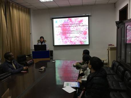 2017年12月25日下午,基础医学院蒋丛姗博士在生化楼二楼科研会议室作了题为“Transcriptomic Network Analysis of Anesthetics Induced Developmental Neurotoxicity "的访学报告,与基础医学院师生分享了她在威斯康辛医学院访学的收获和心得。